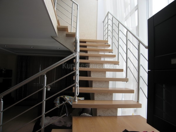 При отделке бетонной лестницы использовался КАКОЕ ДЕРЕВО ЛЕСТНИЦЫ И ПЕРИЛ, И КАКОЙ ЦВЕТ. Проект был выполнен в г. Москва.